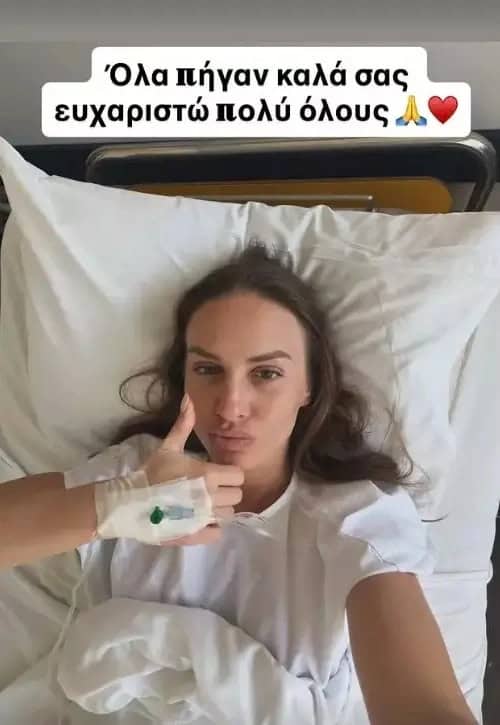 «Όλα πήγαν καλά, σας ευχαριστώ πολύ όλους 🙏❤️», γράφει πάνω στη φωτογραφία, δείχνοντας ότι υποβλήθηκε με επιτυχία σε χειρουργική επέμβαση, χωρίς να δίνει περισσότερες λεπτομέρειες για το πρόβλημα υγείας της. Οι θαυμαστές της της εύχονται αμέσως ταχεία ανάρρωση.