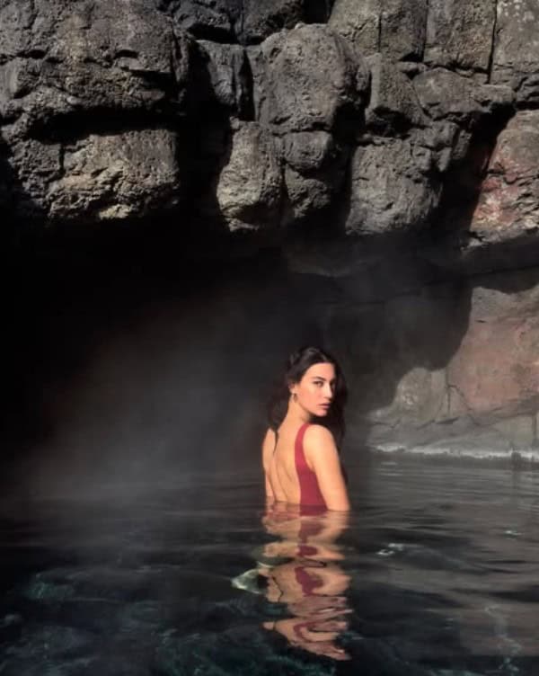 Η ηθοποιός εντυπωσιάζεται από τα πεντακάθαρα νερά της περιοχής, τα οποία φιλτράρονται φυσικά μέσα από λάβα και θεωρούνται από τα πιο καθαρά στον κόσμο.