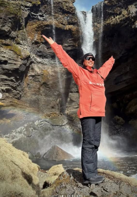 Η ηθοποιός και παρουσιάστρια εξερευνά τα επιβλητικά τοπία της Ισλανδίας και εντυπωσιάζεται από τη φυσική τους ομορφιά. Οι καταρράκτες και τα ουράνια τόξα κυριαρχούν στις φωτογραφίες της και τραβούν την προσοχή των ακολούθων της.