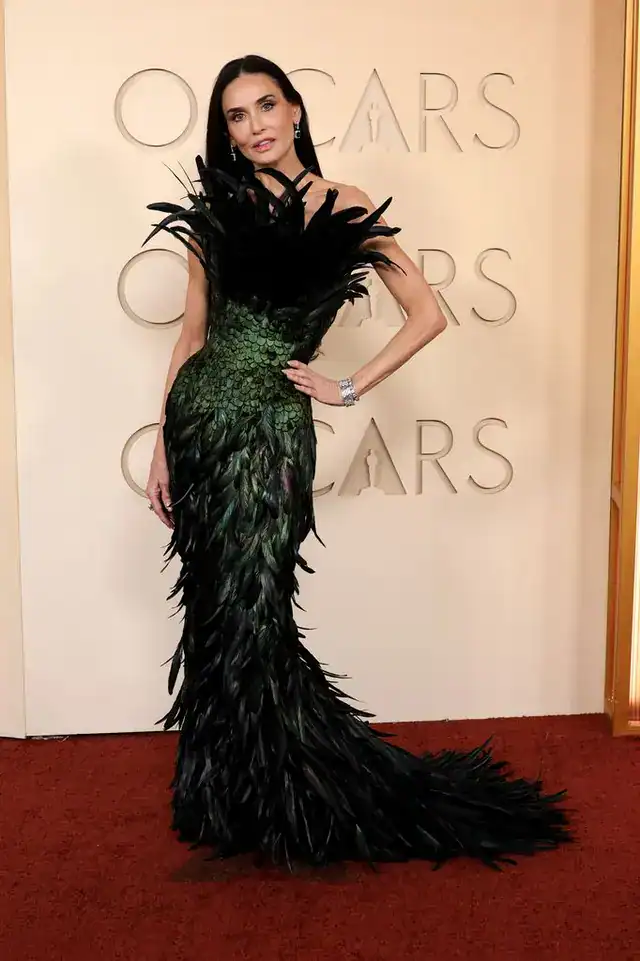 Η κινηματογραφική σταρ απέδειξε ότι παραμένει δύναμη στο κόκκινο χαλί καθώς επέστρεψε στα Όσκαρ με ένα τολμηρό look. Η Demi Moore απέδειξε για ακόμη μία φορά την ικανότητά της να ανανεώνεται, φτάνοντας στην 98η Τελετή Απονομής των Όσκαρ με ένα εντυπωσιακό φτερωτό φόρεμα που τραβούσε όλα τα βλέμματα στη μεγαλύτερη βραδιά του Χόλιγουντ. Η ηθοποιός υιοθέτησε ένα glam στιλ υψηλού δράματος με ένα γλυπτό φόρεμα Gucci σε πράσινο χρώμα, με στρώσεις από ιριδίζοντα φτερά που λαμπύριζαν κάτω από τα φώτα του κόκκινου χαλιού. Η εφαρμοστή σιλουέτα ανέδειξε το επιβλητικό της παρουσιαστικό, ενώ τα υφασμάτινα φτερά κατέληγαν σε μία εντυπωσιακή ουρά, προσδίδοντας αίσθηση κίνησης και θεατρικότητας. Ένα τολμηρό φτερωτό ντεκολτέ ολοκλήρωνε την εντύπωση, πλαισιώνοντας τους ώμους και προσθέτοντας avant-garde χαρακτήρα στη δημιουργία. Η Demi συνδύασε το look με ίσια, καλοχτενισμένα σκουρόχρωμα μαλλιά, χωρισμένα στο κέντρο, ενισχύοντας την μοντέρνα, γλυπτική αισθητική. Κοσμήματα από διαμάντια της Boucheron πρόσφεραν εκλεπτυσμένη αντίθεση στις δραματικές υφές του φορέματος, ενώ το φρέσκο, λαμπερό μακιγιάζ τόνιζε τα διαχρονικά χαρακτηριστικά της. Η εμφάνισή της σηματοδότησε την επιστροφή της στη σκηνή των Όσκαρ, μετά την περσινή τελετή, όπου είχε προταθεί για Καλύτερη Ηθοποιό για την ερμηνεία της στην ταινία The Substance. Παρόλο που το βραβείο πήγε τελικά στην Mikey Madison για την ταινία Anora, ο ρόλος της Moore στο προκλητικό φιλμ προκάλεσε ευρεία συζήτηση για τη γήρανση, την ταυτότητα και τα μεταβαλλόμενα πρότυπα ομορφιάς στο Χόλιγουντ. Το έργο ενίσχυσε περαιτέρω τη φήμη της ως ηθοποιού που δεν φοβάται να αντιμετωπίσει σύνθετα και συχνά δύσκολα θέματα. Κατά τη διάρκεια των δεκαετιών, η Demi έχει χτίσει τη φήμη της ως «χαμαιλέοντας» του κόκκινου χαλιού, μεταβαίνοντας άψογα από την κλασική κομψότητα σε τολμηρές μόδες υψηλής ραπτικής. Από μινιμαλιστικά κοστούμια έως εντυπωσιακά couture, το συνεχώς εξελισσόμενο στυλ της αντικατοπτρίζει μια καριέρα καθορισμένη από ανανέωση και ανθεκτικότητα.