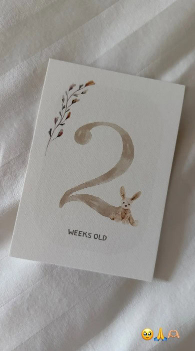 Στη φωτογραφία που δημοσίευσε, ξεχώριζε μια κομψή κάρτα σε απαλές αποχρώσεις, διακοσμημένη με ένα γλυκό λαγουδάκι και τον αριθμό «2», μαζί με τη φράση «weeks old». Με αυτόν τον τρόπο, αποκάλυψε πως η νεογέννητη κόρη της, που απέκτησε με τον σύντροφό της, Παναγιώτης Κουτσουμπής, έκλεισε ήδη τις δύο πρώτες εβδομάδες ζωής.