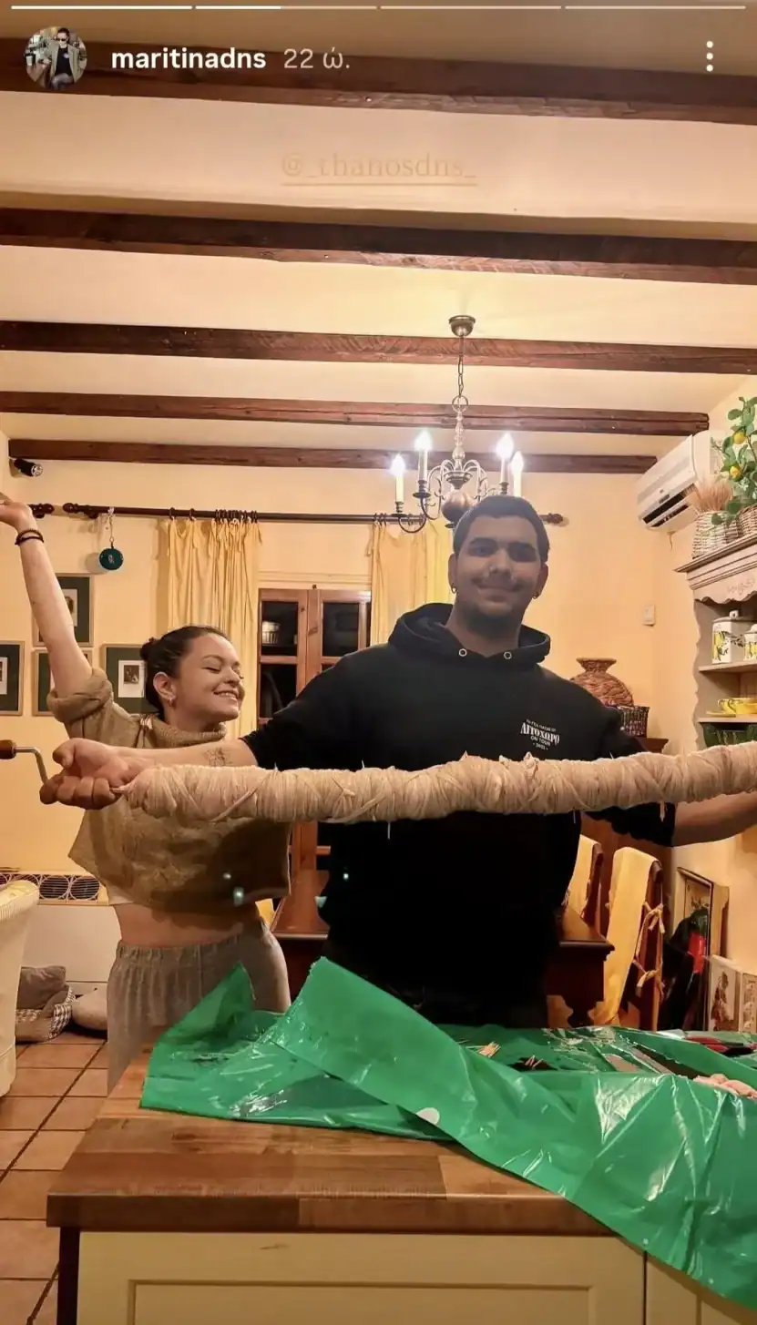 Παράλληλα, το εορταστικό κλίμα στο σπίτι ήταν έντονο και πιο παραδοσιακό, με τη Μαριτίνα να δημοσιεύει στιγμιότυπα από την προετοιμασία του πασχαλινού τραπεζιού. Το σούβλισμα των κρεάτων είχε την τιμητική του, θυμίζοντας κλασικές ελληνικές πασχαλινές εικόνες, γεμάτες οικογενειακή θαλπωρή, χαμόγελα και συνεργασία στην κουζίνα και τον εξωτερικό χώρο.