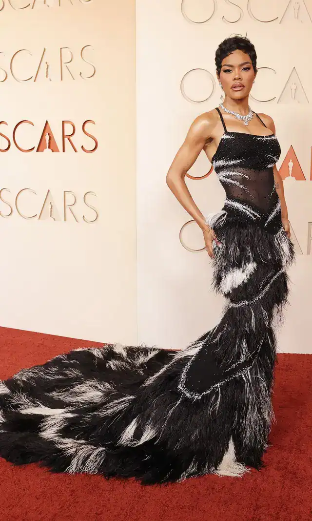 Η Teyana, γνωστή για το τολμηρό της στιλ, εντυπωσίασε με το custom ασπρόμαυρο φόρεμα Chanel με λεπτές τιράντες.