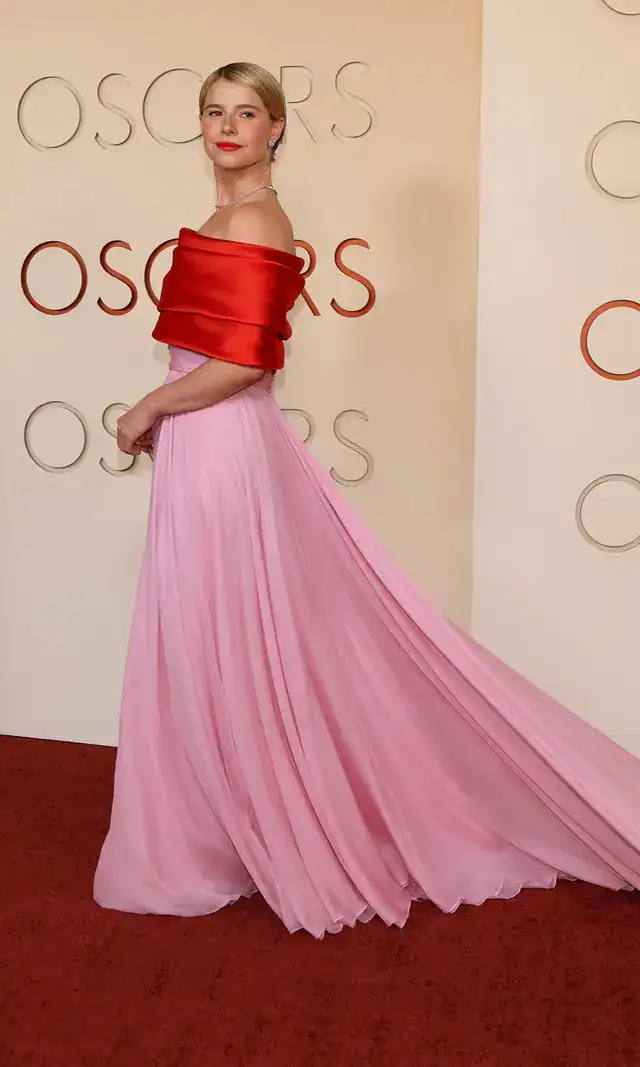 Η Mia ακολούθησε ένα boho-inspired look από Dior με λεπτομέρειες δαντέλας, δίνοντας μια αιθέρια εμφάνιση αντί για την παραδοσιακή Oscar αισθητική.