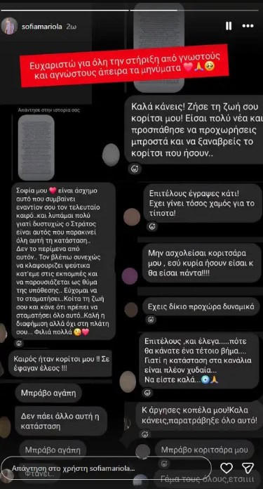 «Ευχαριστώ για όλη τη στήριξη από γνωστούς και αγνώστους. Άπειρα τα μηνύματα», έγραψε χαρακτηριστικά.