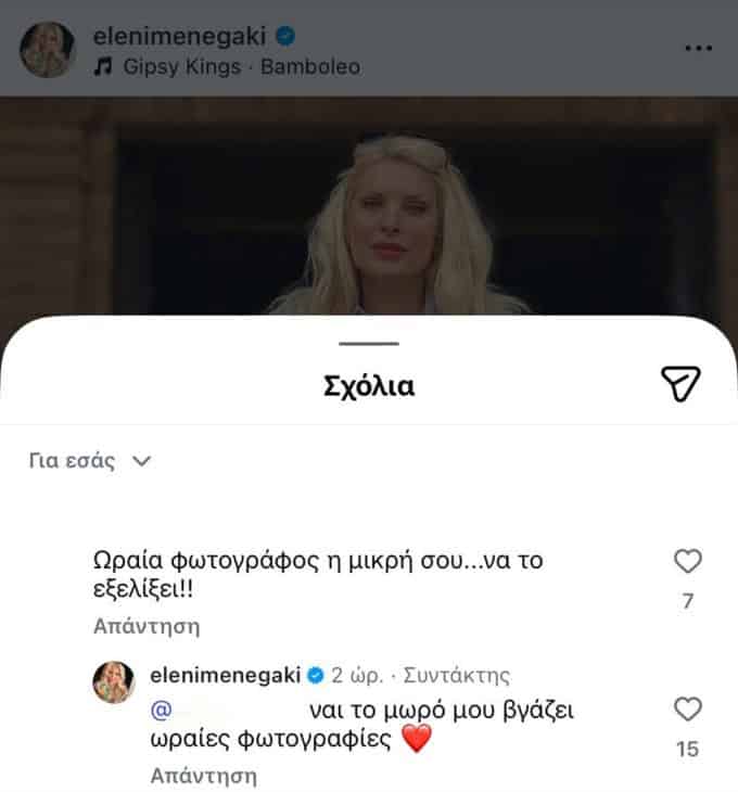 Ανάμεσα στα σχόλια που ξεχώρισαν κάτω από το πρόσφατο φωτογραφικό άλμπουμ, ήταν και εκείνο που αφορούσε τη μικρή Μαρίνα και τις φωτογραφικές της ικανότητες: «Ωραία φωτογράφος η μικρή σου… Να το εξελίξει!!»