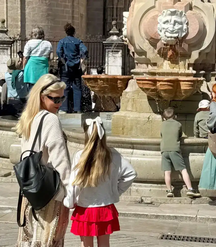 Στις νέες εικόνες, η Ελένη Μενεγάκη ποζάρει σε γραφικά σοκάκια, εντυπωσιακά αξιοθέατα και ηλιόλουστες γωνιές της Σεβίλλης, αποδεικνύοντας για ακόμη μία φορά την αγάπη της για τα ταξίδια και τις όμορφες εικόνες. Σε κάποιες από αυτές, εμφανίζεται αγκαλιά με τον σύζυγό της, ανταλλάσσοντας ένα τρυφερό φιλί, ενώ σε άλλες απαθανατίζεται μαζί με τη μικρή Μαρίνα, σε στιγμές που ξεχειλίζουν οικογενειακή θαλπωρή.